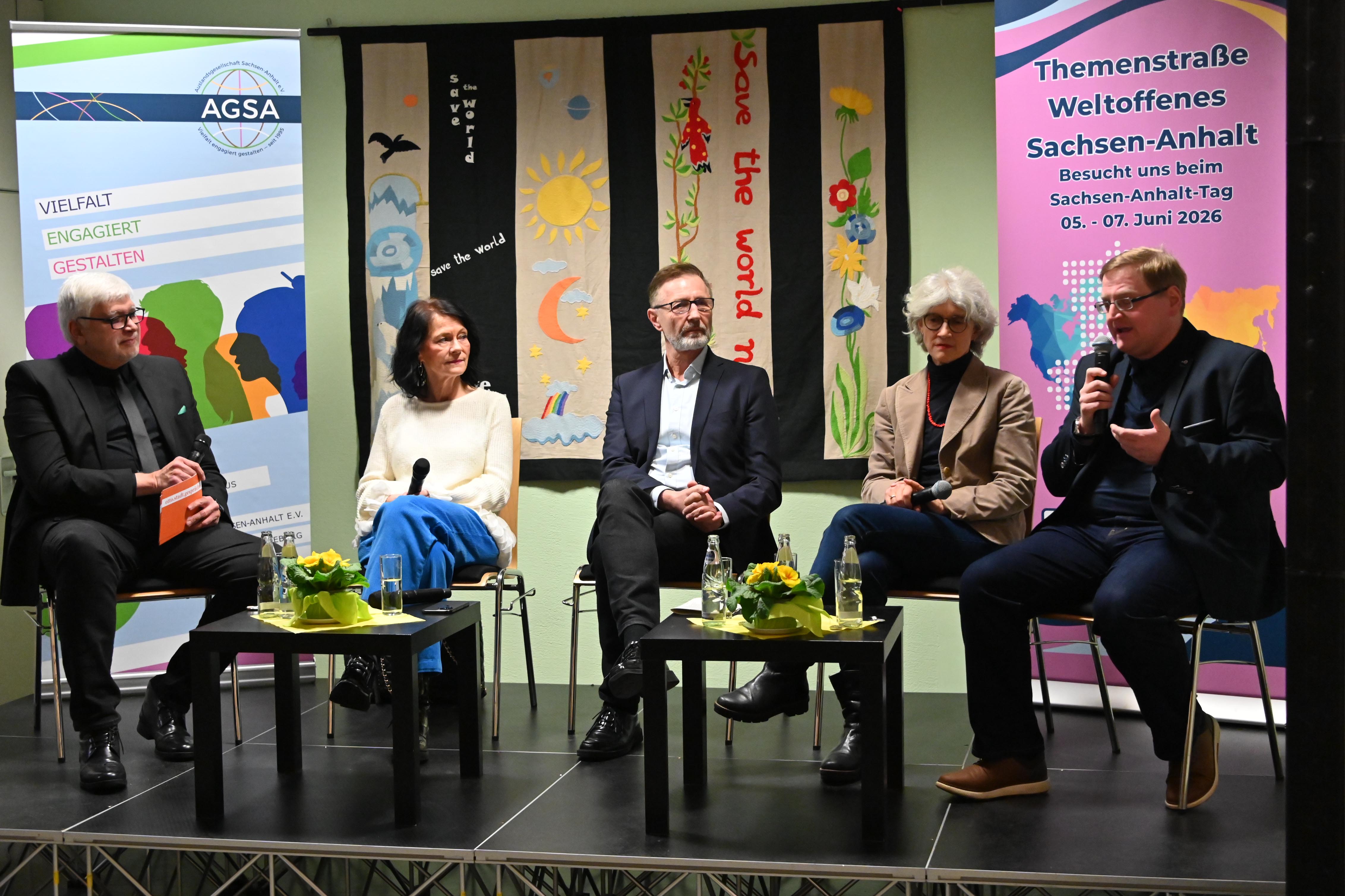 Mit dem neuen Veranstaltungsformat „Stadtgespräch“ haben die Auslandsgesellschaft Sachsen-Anhalt (AGSA) und der Stadtmarketingverein „Pro Magdeburg“ Ende Januar eine neue öffentliche Diskussionsreihe gestartet. Bei der Auftaktveranstaltung im einewelt haus diskutierten vier Gäste über Internationalität, Integration und Weltoffenheit in Sachsen-Anhalt.