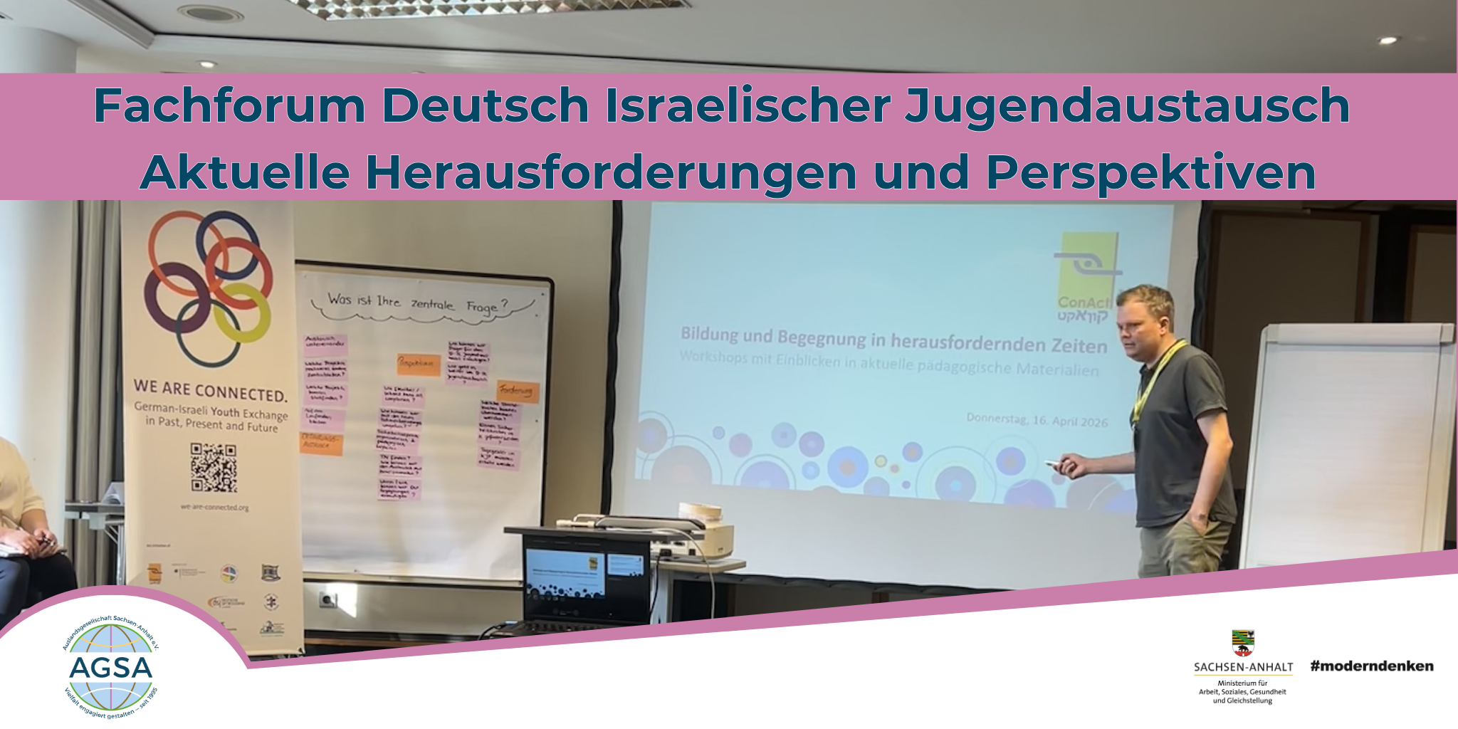 Am 15. und 16. April 2026 wurde Leipzig zum Zentrum für den fachlichen Austausch über die Zukunft der deutsch-israelischen Begegnungsarbeit. Für die Auslandsgesellschaft Sachsen-Anhalt e. V. (AGSA) war die Teilnahme essenziell: Als Dachverband vieler international ausgerichteter Mitgliedsorganisationen und langjähriger Akteur der internationalen Jugendarbeit nutzen wir solche Plattformen, um unsere Netzwerke zu stärken und pädagogische Konzepte an aktuelle gesellschaftliche Dynamiken anzupassen.
