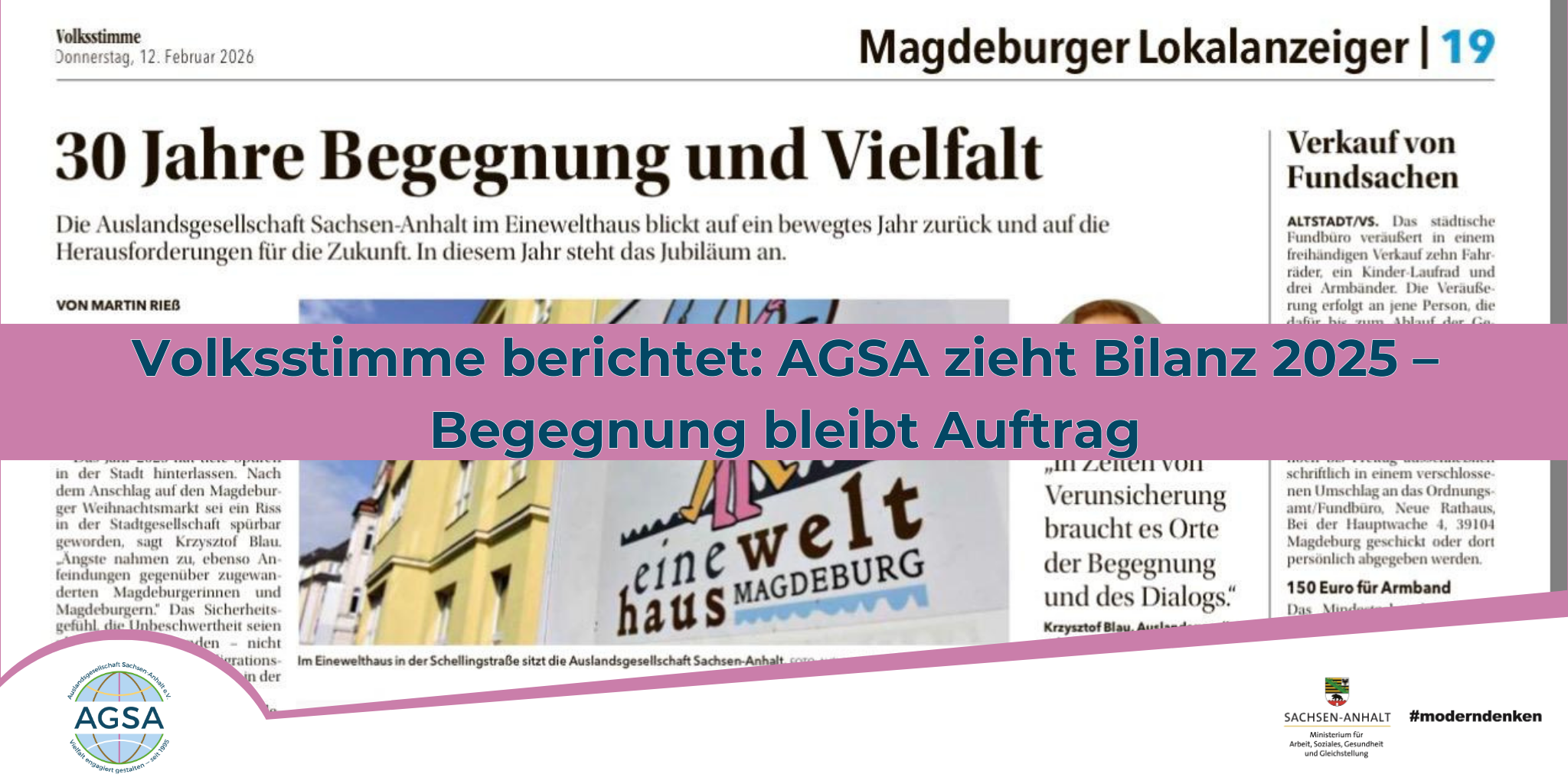 Volksstimme berichtet: AGSA zieht Bilanz 2025 – Begegnung bleibt Auftrag