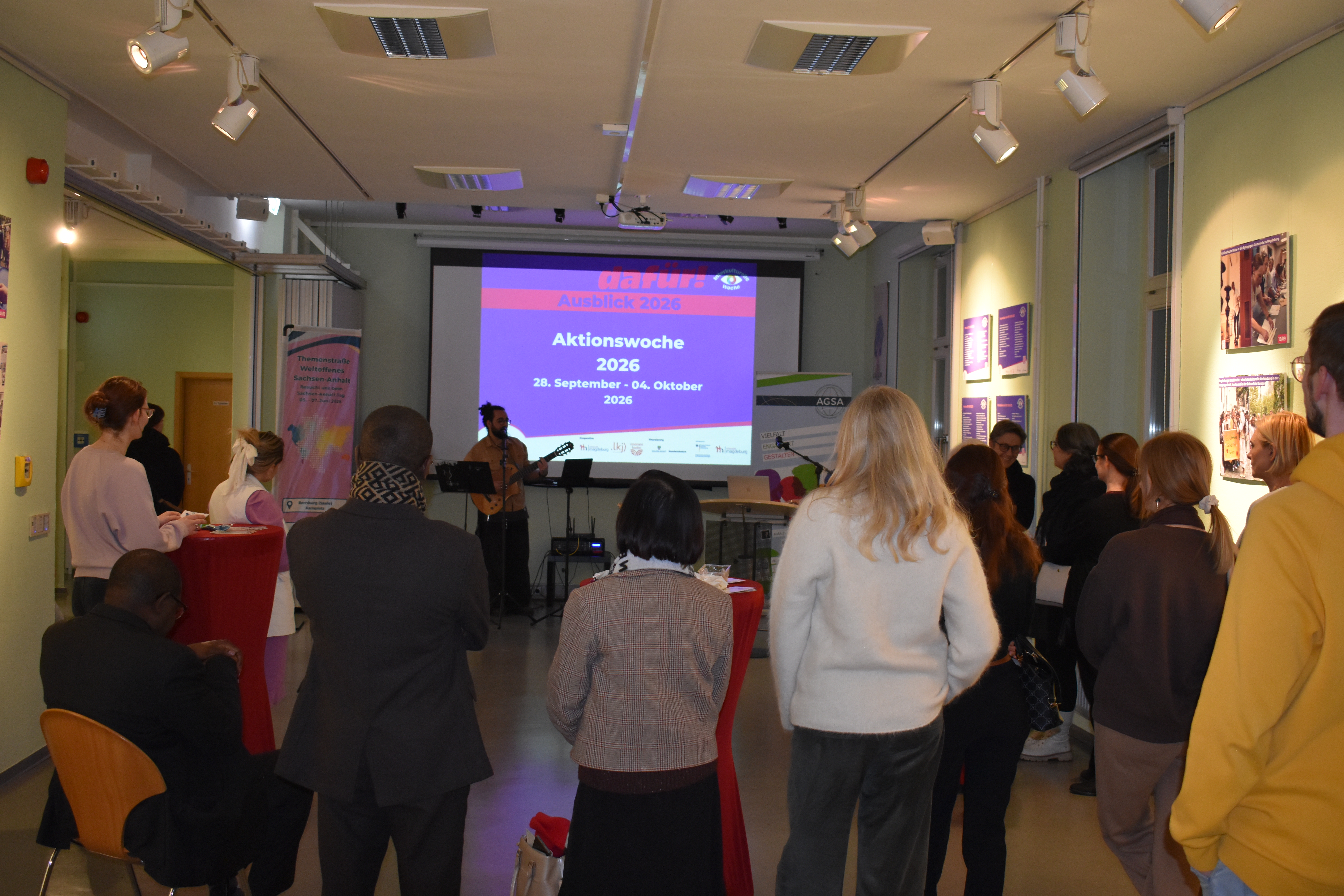 Am 21. Januar wurde im einewelt haus Magdeburg die Ausstellung „Magdeburg dafür! Rückblick auf die IKW 2025“ feierlich eröffnet. Die Veranstaltung bot Raum für Begegnung, Austausch und einen gemeinsamen Rückblick auf die Interkulturellen Wochen 2025, die mit großer Beteiligung und vielfältigen Formaten das Stadtbild geprägt haben.