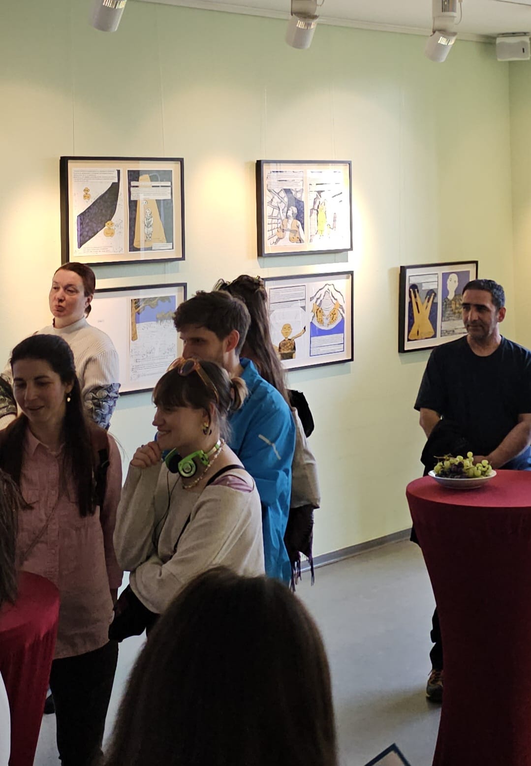 Die Besucher*innen nahmen sich Zeit für die Ausstellung, kamen miteinander ins Gespräch und erhielten Einblicke in den Entstehungsprozess der Graphic Novel. So wurde die Vernissage nicht nur zu einer künstlerischen Präsentation, sondern auch zu einem Ort des Austauschs über Zugehörigkeit, Sichtbarkeit und gesellschaftliche Teilhabe.