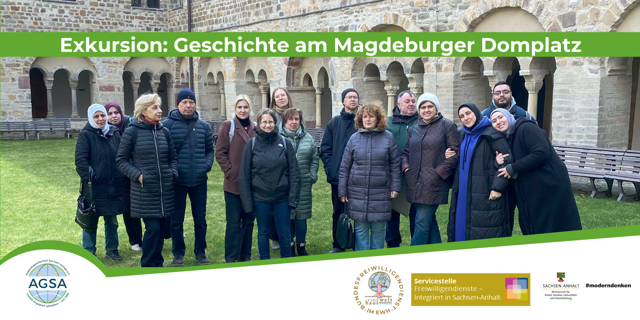 Am 26. März 2026 erkundeten internationale Bundesfreiwillige der Auslandsgesellschaft Sachsen-Anhalt e.V. (AGSA) und der Freiwilligen-Agentur Halle gemeinsam mit der Servicestelle „Freiwilligendienste – integriert in Sachsen-Anhalt“ die historische Mitte Magdeburgs.