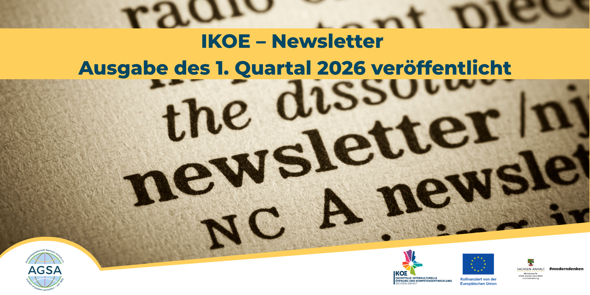 Die „Fachstelle Interkulturelle Öffnung und Kompetenzentwicklung Sachsen-Anhalt“ (IKOE-Projekt der Auslandsgesellschaft Sachsen-Anhalt e.V.) trägt mit Weiterbildungsprogrammen, Vernetzungsarbeit und der Begleitung interkultureller Prozesse zur Förderung einer diskriminierungsfreien und vielfältigen Gesellschaft bei. Ein besonderer Fokus liegt auf der Zusammenarbeit mit Verwaltungen, Bildungsakteuren und zivilgesellschaftlichen Organisationen. Die Schwerpunkte der Projektaktivitäten orientieren sich am Leitbegriff der Interkulturellen Öffnung als Querschnittsaufgabe der Integrationsarbeit und Handlungsfeld des Landesintegrationskonzepts. Das IKOE-Projekt befindet sich als „Fachstelle Interkulturelle Öffnung und Kompetenzentwicklung Sachsen-Anhalt“ bis Juni 2026 in seiner vierten Förderphase. Die Förderung erfolgt durch den AMIF-Fonds der EU und das Land Sachsen-Anhalt. Das Team gibt auch in einem quartalsweise erscheinenden Newsletter Einblicke in die Entwicklungen der letzten Monate und berichtet über spannende Veranstaltungen.