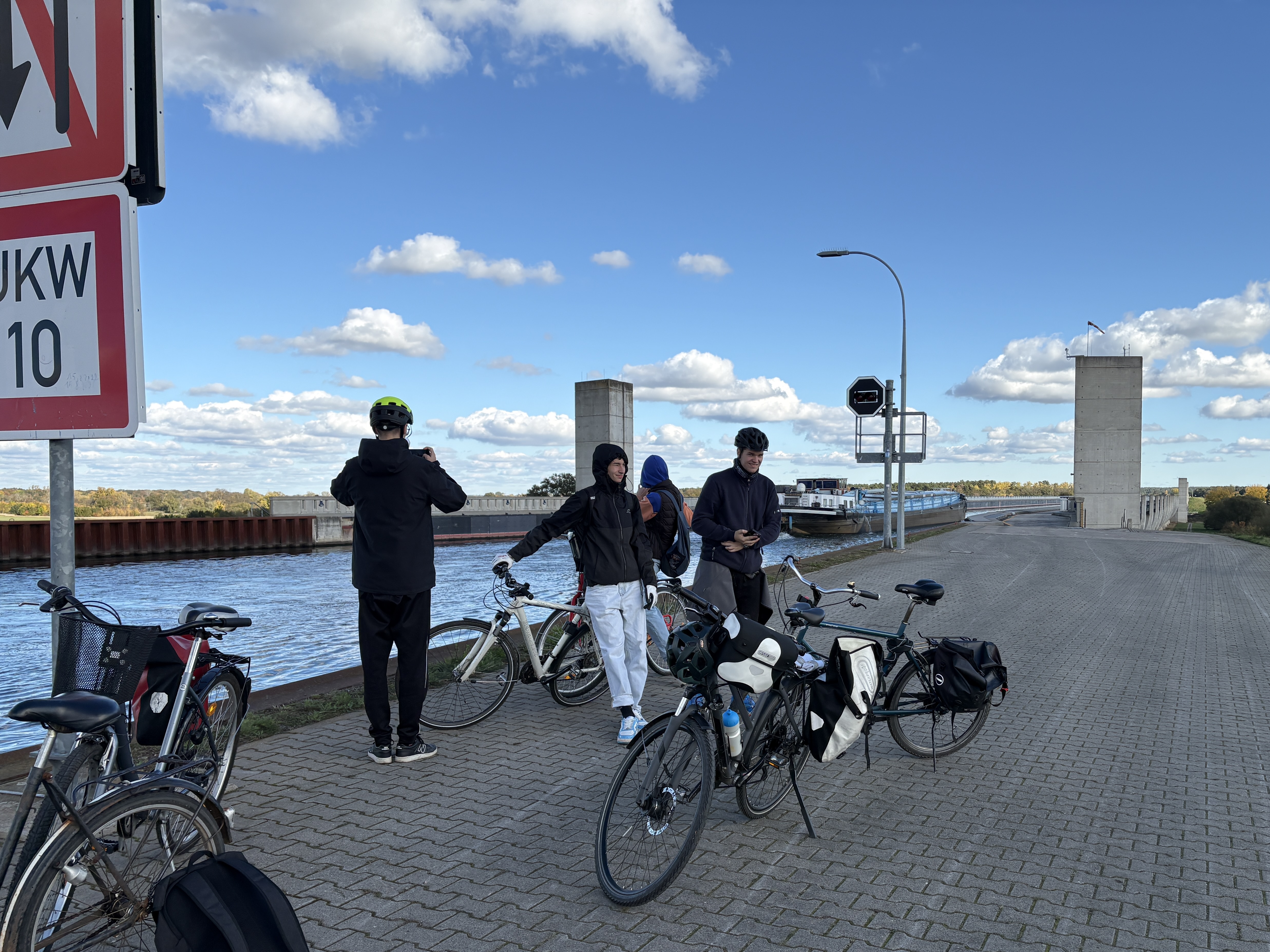 Zum Abschluss der ErasmusDays wurde es sportlich und sonnig zugleich: Bei einer gemeinsamen Fahrradtour mit den slowakischen Auszubildenden ging es zum Wasserstraßenkreuz bei Magdeburg, wo Elbe, Mittellandkanal und Elbe-Havel-Kanal aufeinandertreffen. Zwischen Sprachenmix, technischer Faszination und Apfelkuchen-Pausen entstand eine wunderbare Atmosphäre europäischer Gemeinschaft. Der perfekte Ausklang einer Woche, die zeigte, dass Lernen und Austausch auch jenseits von Klassenzimmer und Werkstatt stattfinden können.