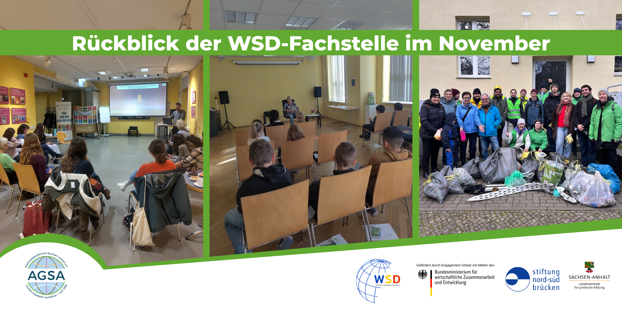 Im November hat die WSD-Fachstelle der AGSA drei vielseitige Veranstaltungen umgesetzt: den monatlichen SDG-Club zum Thema Geschlechtergerechtigkeit, eine Vorlesestunde zum bundesweiten Vorlesetag sowie eine Müllsammelaktion zur Europäischen Woche der Abfallvermeidung.