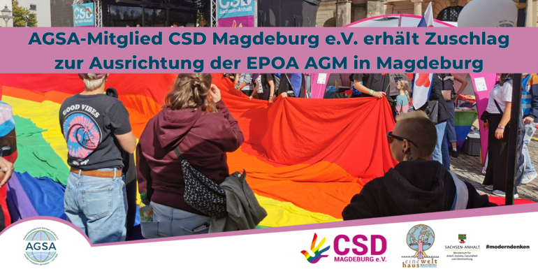 Die Mitgliedsorganisation der AGSA CSD Magdeburg e.V. hat den Zuschlag zur Ausrichtung des Annual General Meetings der European Pride Organizers Association erhalten. Die AGSA gratuliert ihrer Mitgliedsorganisation zu diesem Erfolg.