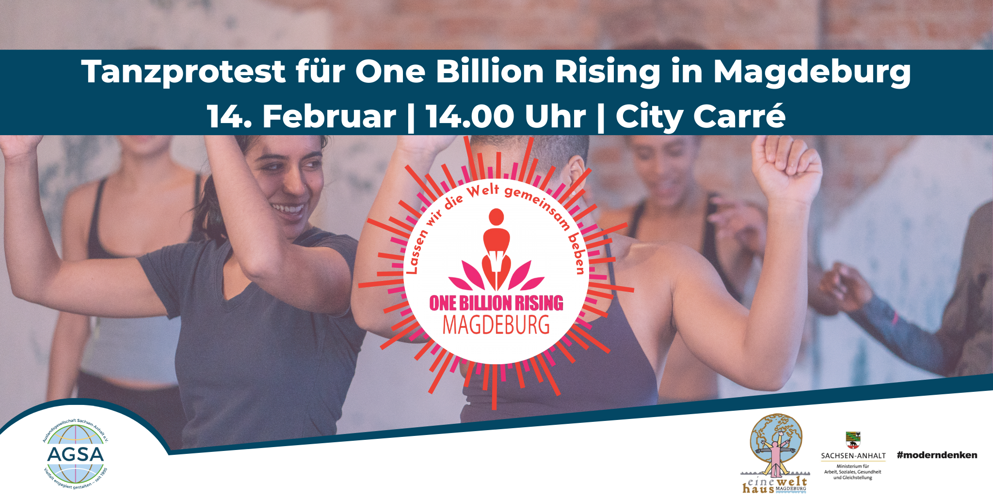 Am weltweiten Aktionstag One Billion Rising am 14. Februar 2026 laden wir alle Interessierten ein, gemeinsam im City Carré Magdeburg (gegenüber vom Hauptbahnhof) von 14-15 Uhr zu den Songs Break the Chain und One Billion mitzutanzen. Mit unserem Tanz setzen wir ein sichtbares Zeichen gegen Gewalt an Frauen und Mädchen und zeigen kollektive Stärke sowie globale Solidarität über alle Grenzen hinweg.