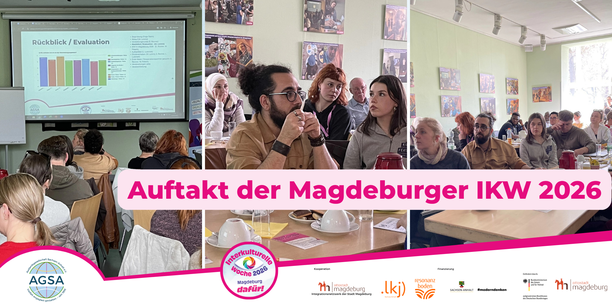 Eingeladen zu diesem ersten Vernetzungstreffen hatte die Auslandsgesellschaft Sachsen-Anhalt e.V. als Trägerin der Magdeburger IKW, gemeinsam mit den Kooperationspartnern, dem Integrationsnetzwerk der LH Magdeburg und der .lkj) Sachsen-Anhalt e.V. (Projekt Resonanzboden // House of Resources Magdeburg).