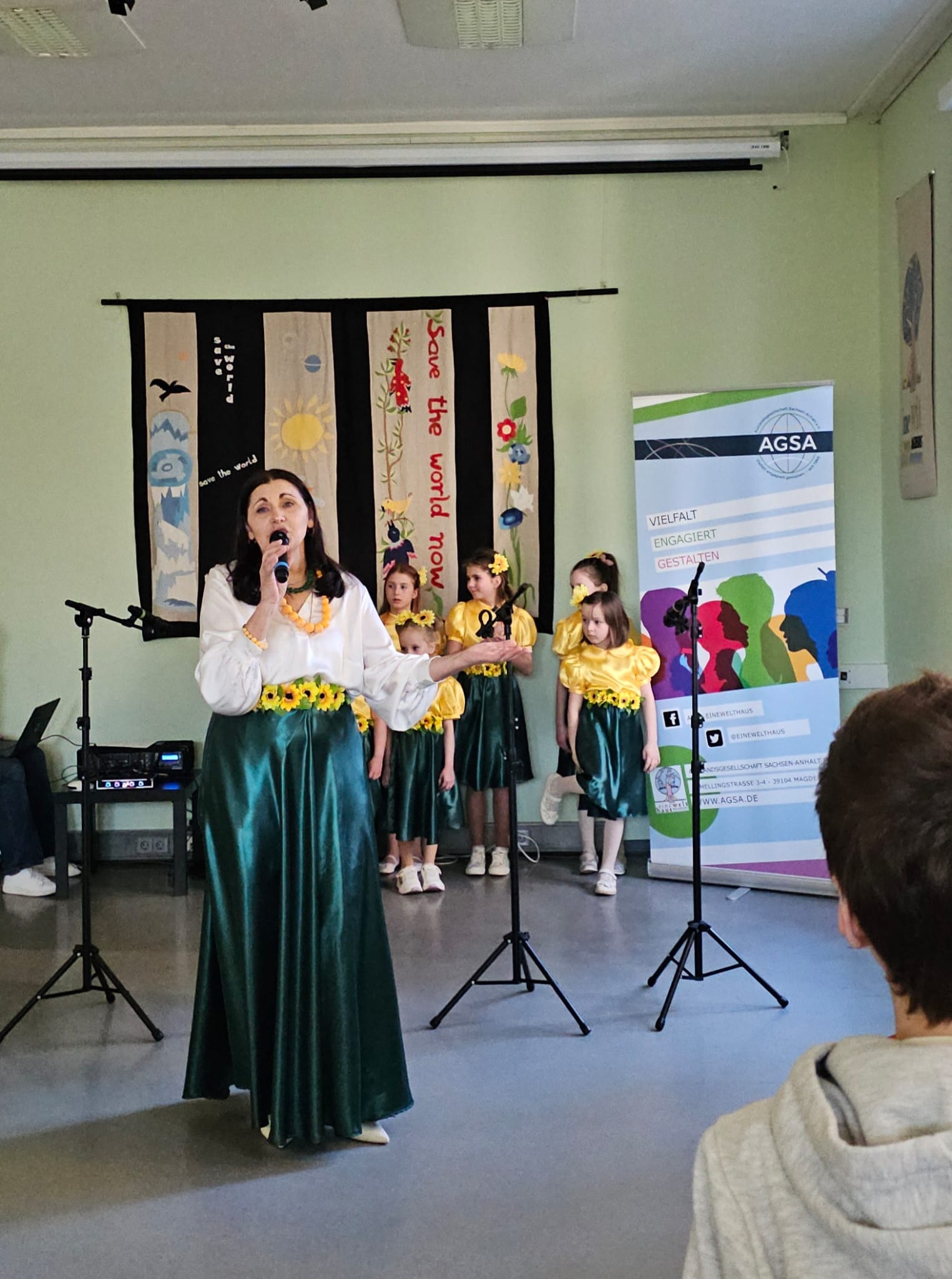 Für den musikalischen Rahmen sorgten der Kinderchor „Blumenblätter“ sowie die Solistin Larissa Shevchuk vom Vokalensemble „Singende Ukraine“, das von dem AGSA-Mitgliedsverein Harmonia gegründet wurde. Ihre Beiträge verliehen der Eröffnung eine würdige und einladende Atmosphäre.