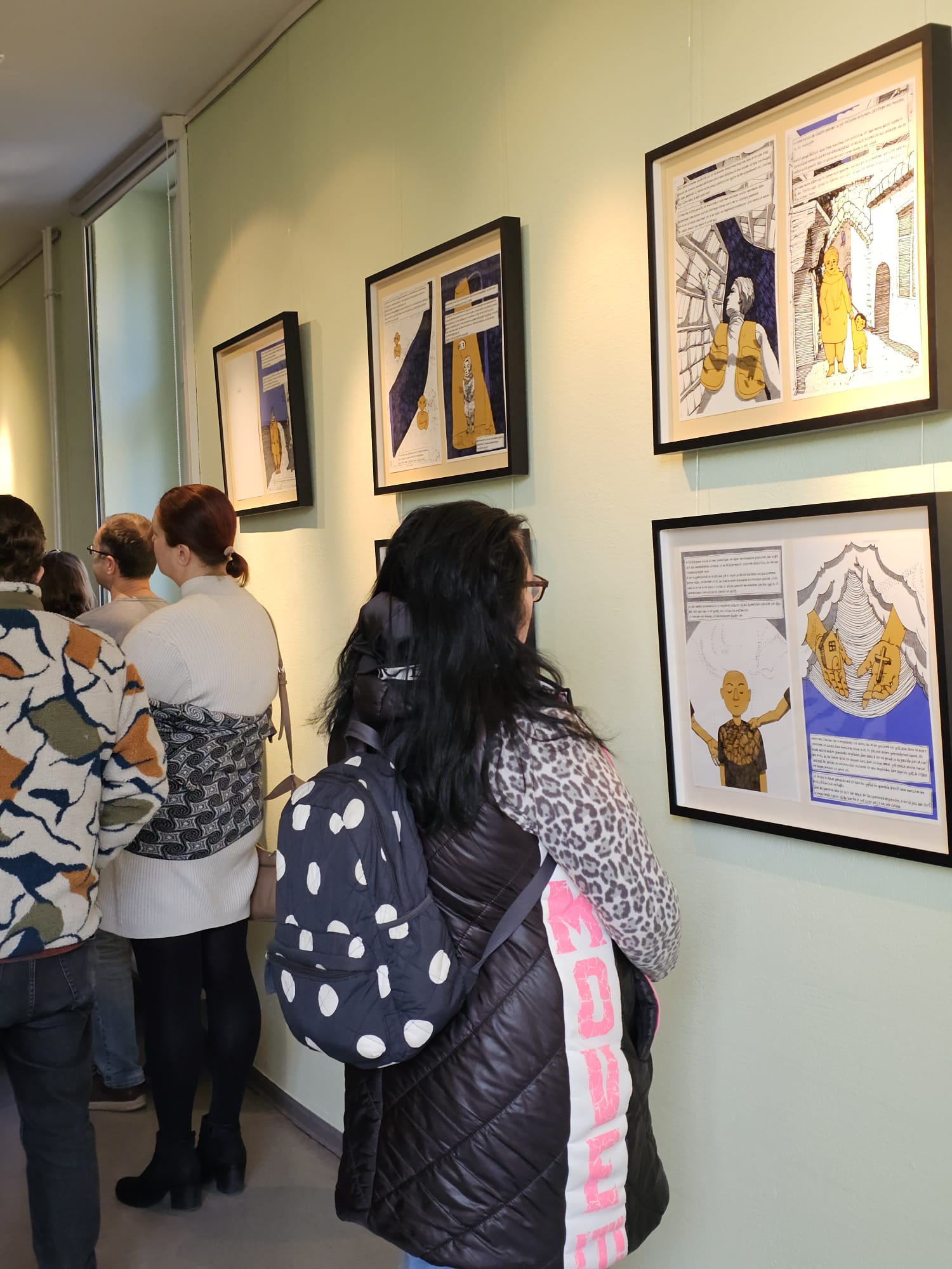 Die Besucher*innen nahmen sich Zeit für die Ausstellung, kamen miteinander ins Gespräch und erhielten Einblicke in den Entstehungsprozess der Graphic Novel. So wurde die Vernissage nicht nur zu einer künstlerischen Präsentation, sondern auch zu einem Ort des Austauschs über Zugehörigkeit, Sichtbarkeit und gesellschaftliche Teilhabe.