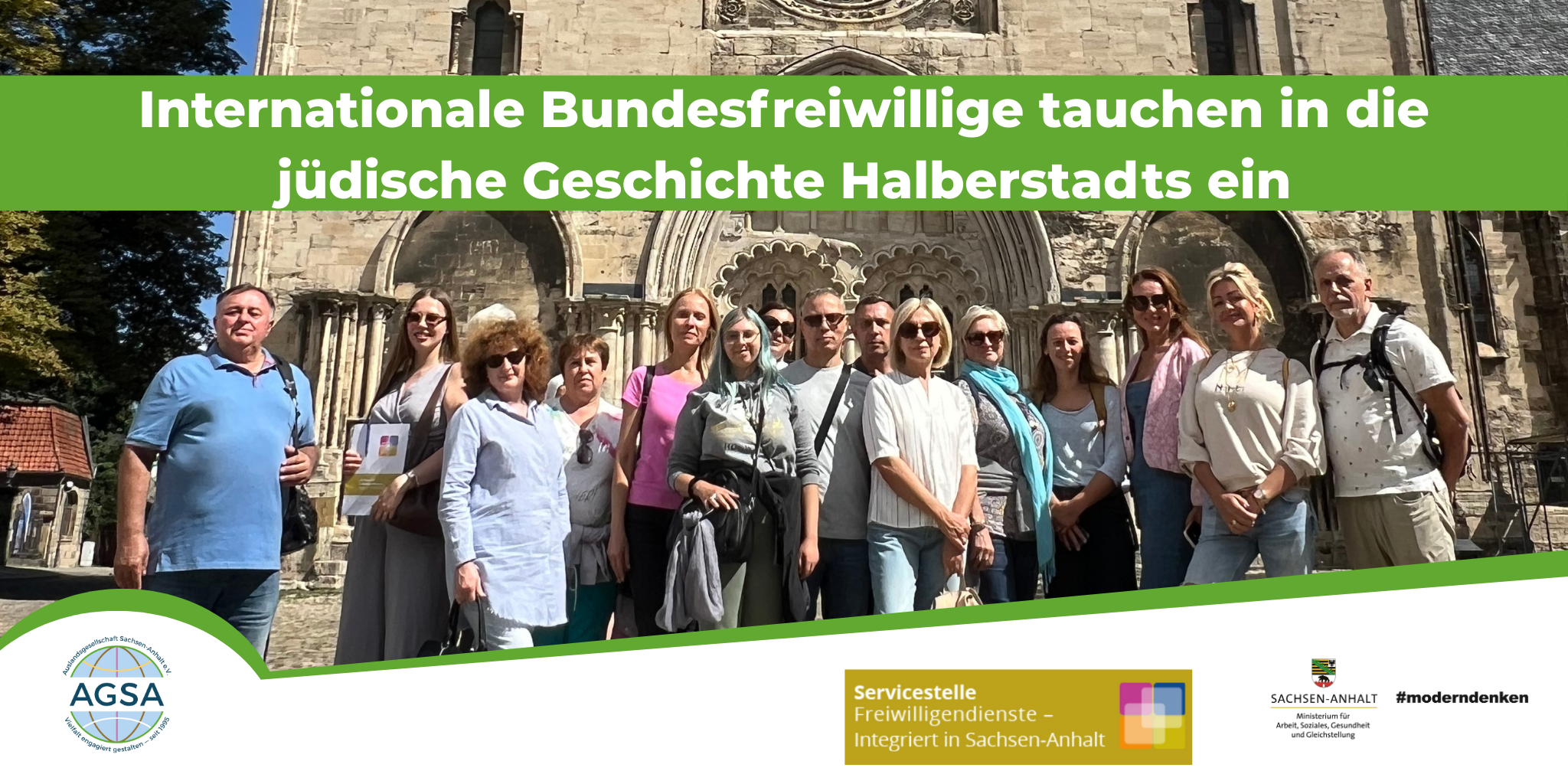 Am 21. August 2025 gingen die internationalen Bundesfreiwilligen der AGSA und der Freiwilligenagentur Halle gemeinsam mit der Servicestelle „Freiwilligendienste – Integriert in Sachsen-Anhalt“ auf eine besondere Zeitreise: eine Exkursion in das Berend Lehmann Museum für jüdische Geschichte und Kultur in Halberstadt. Unter dem Leitgedanken der Interkulturellen Öffnung sollte die Exkursion ein wichtiger Beitrag zur Auseinandersetzung mit der leid- wie wechselvollen Geschichte der Juden sein und für ein friedliches und tolerantes Zusammenleben in kultureller und religiöser Vielfalt werben.