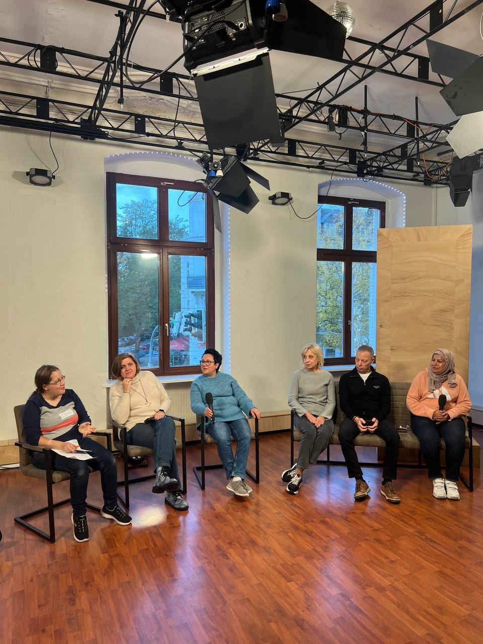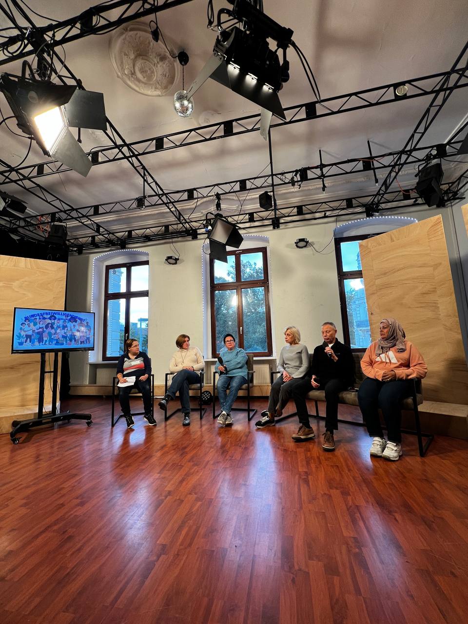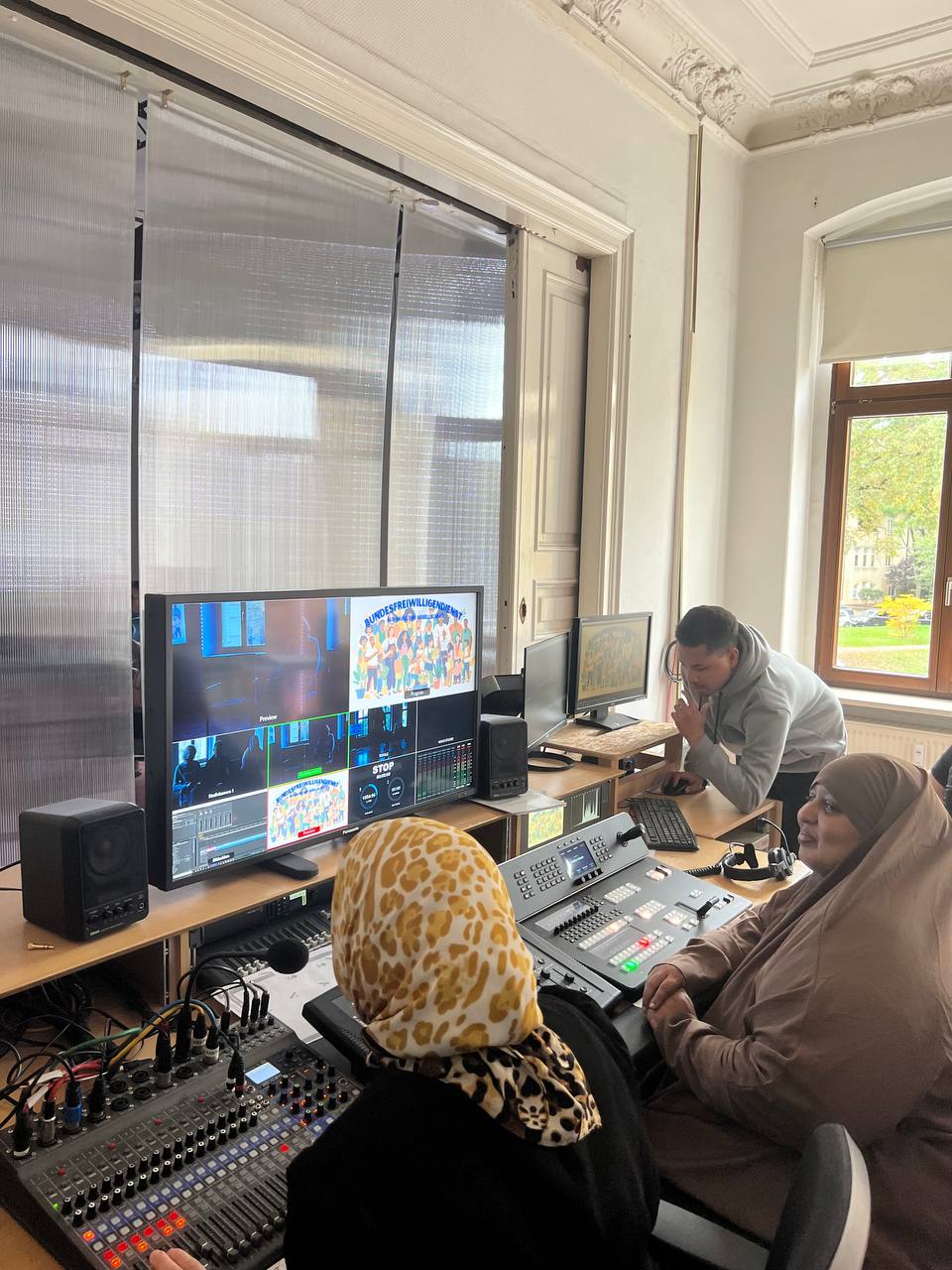 Unter dem Thema „Integration von BFDler:innen und die Bedeutung des Freiwilligendienstes“ produzierten die Teilnehmenden aus verschiedenen Ländern – darunter Deutschland, Syrien, Ukraine, Tschetschenien und Russland – ihre eigene Fernsehsendung. Gemeinsam mit den Medienmitarbeiter:innen und Freiwilligen des Offenen Kanals haben die Freiwilligen gefilmt, Interviews geführt und eine Talkrunde gestaltet.
