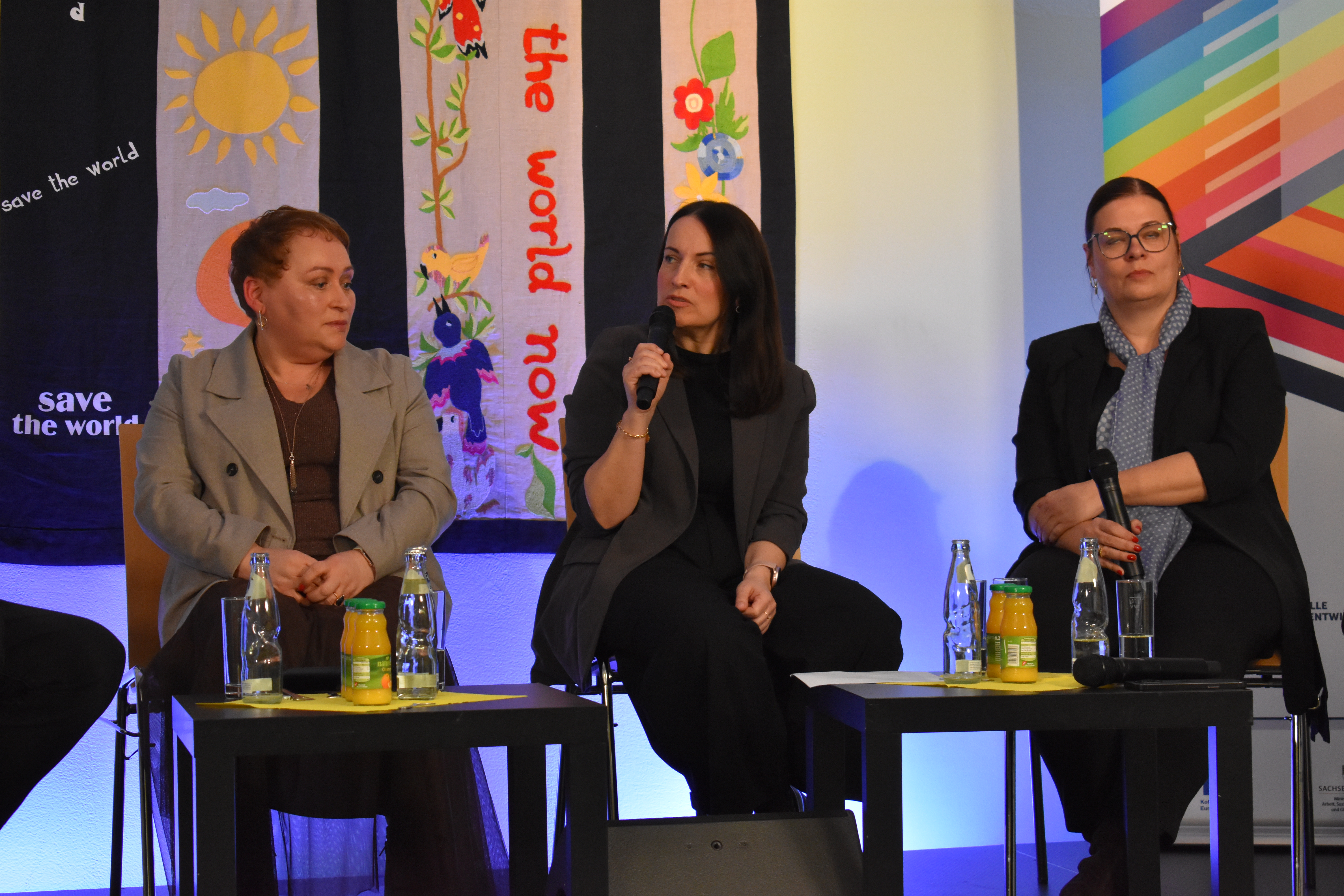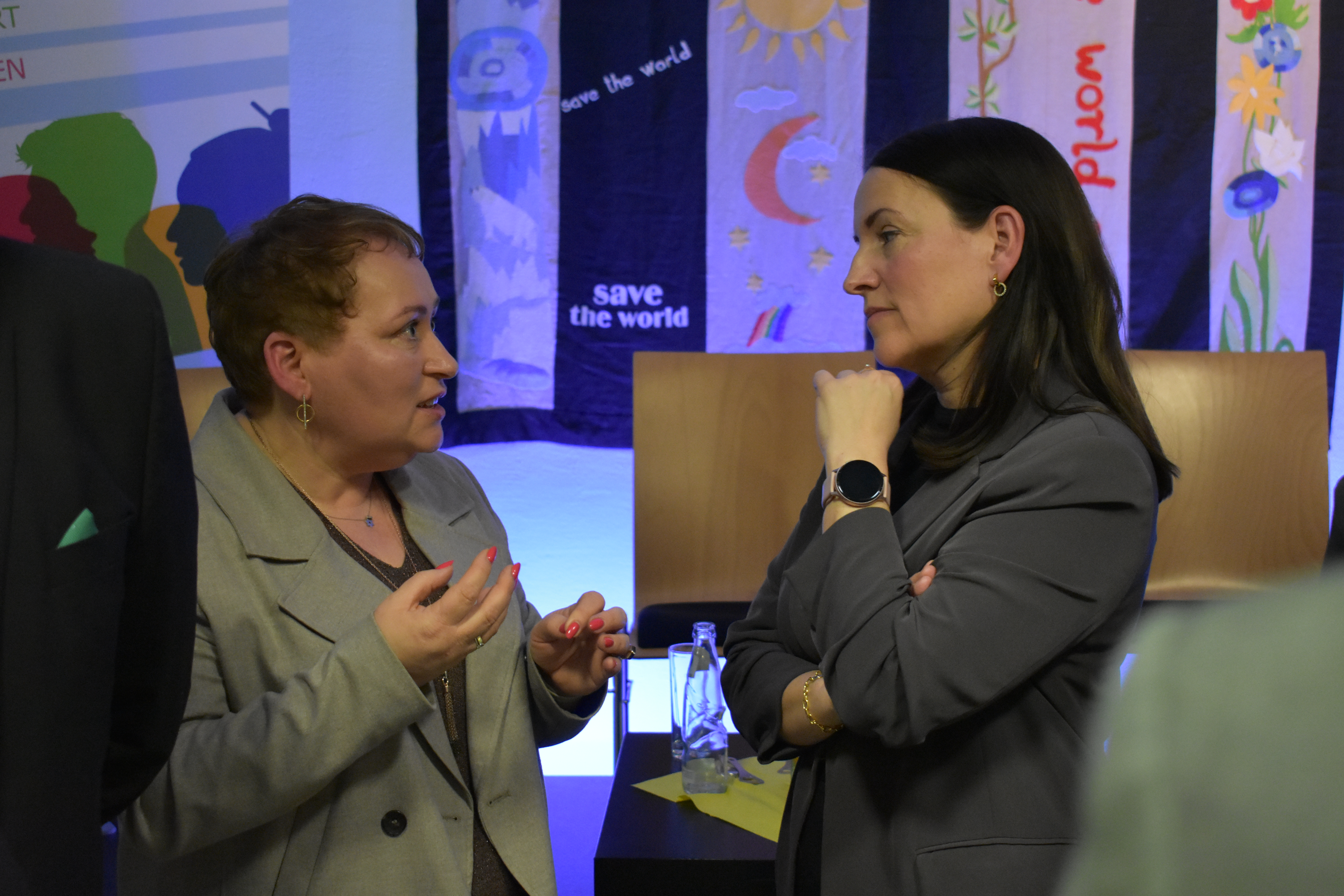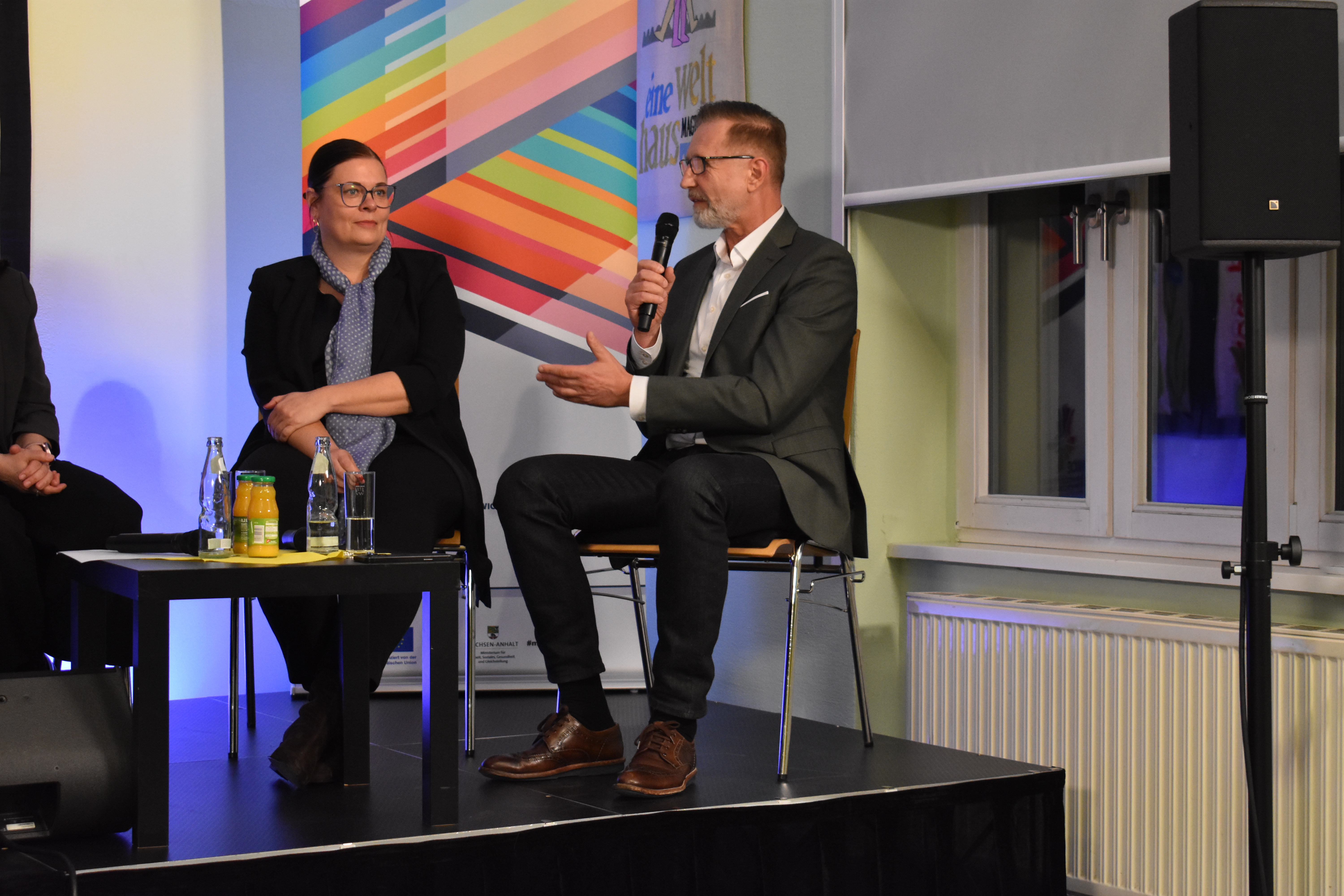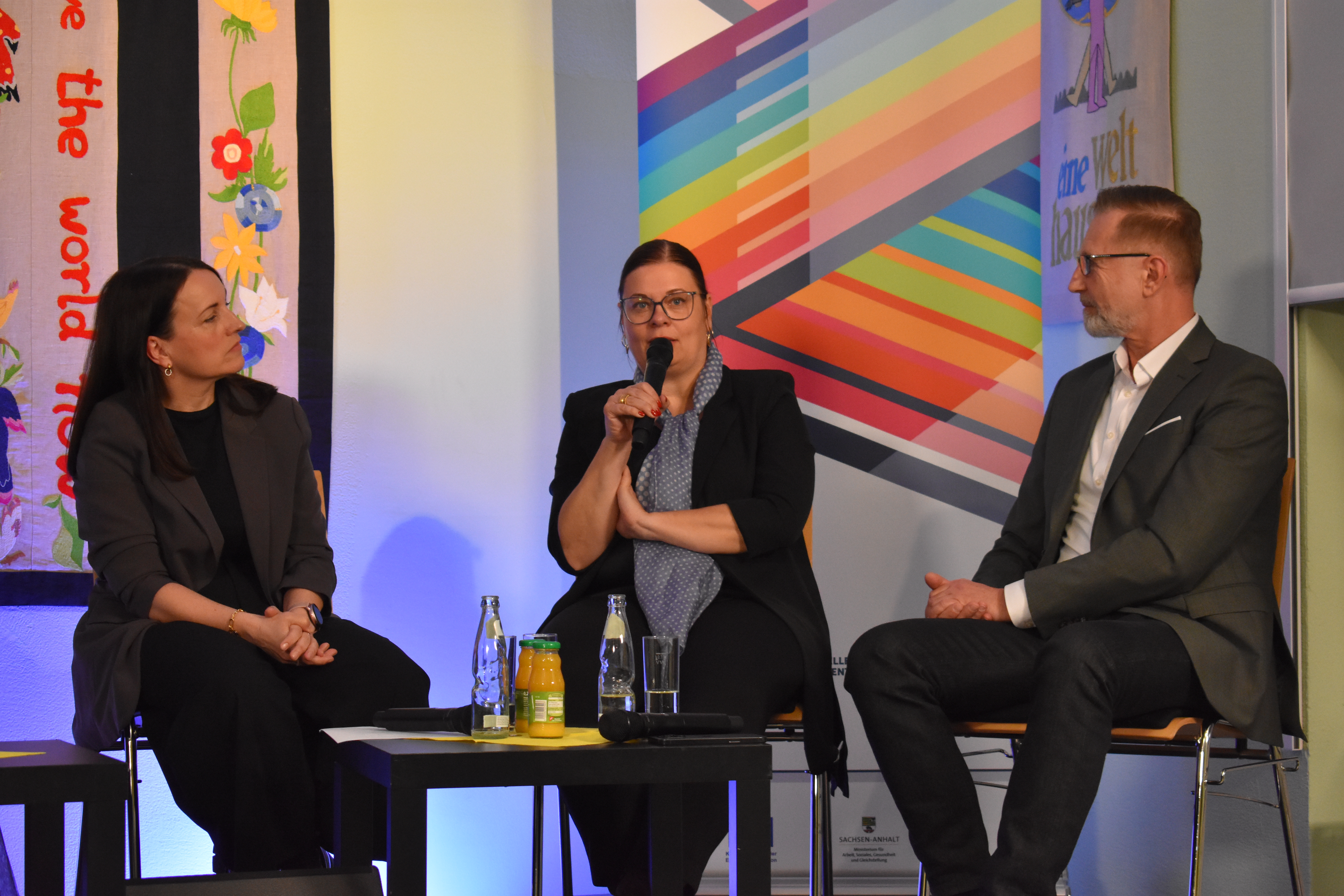 Inessa Myslitska, Vorsitzende der Synagogengemeinde zu Magdeburg, teilte ihre persönliche Erfolgsgeschichte. Die 2023 eröffnete Synagoge zu Magdeburg sei weit mehr als ein Gotteshaus: Mit über 5.000 Besuchern hat sie sich darüber hinaus als Begegnungsstätte und Ort der Bildung und Kultur etabliert. Trotz notwendiger Sicherheitsmaßnahmen betonte sie: „Unsere Türen sind offen.“