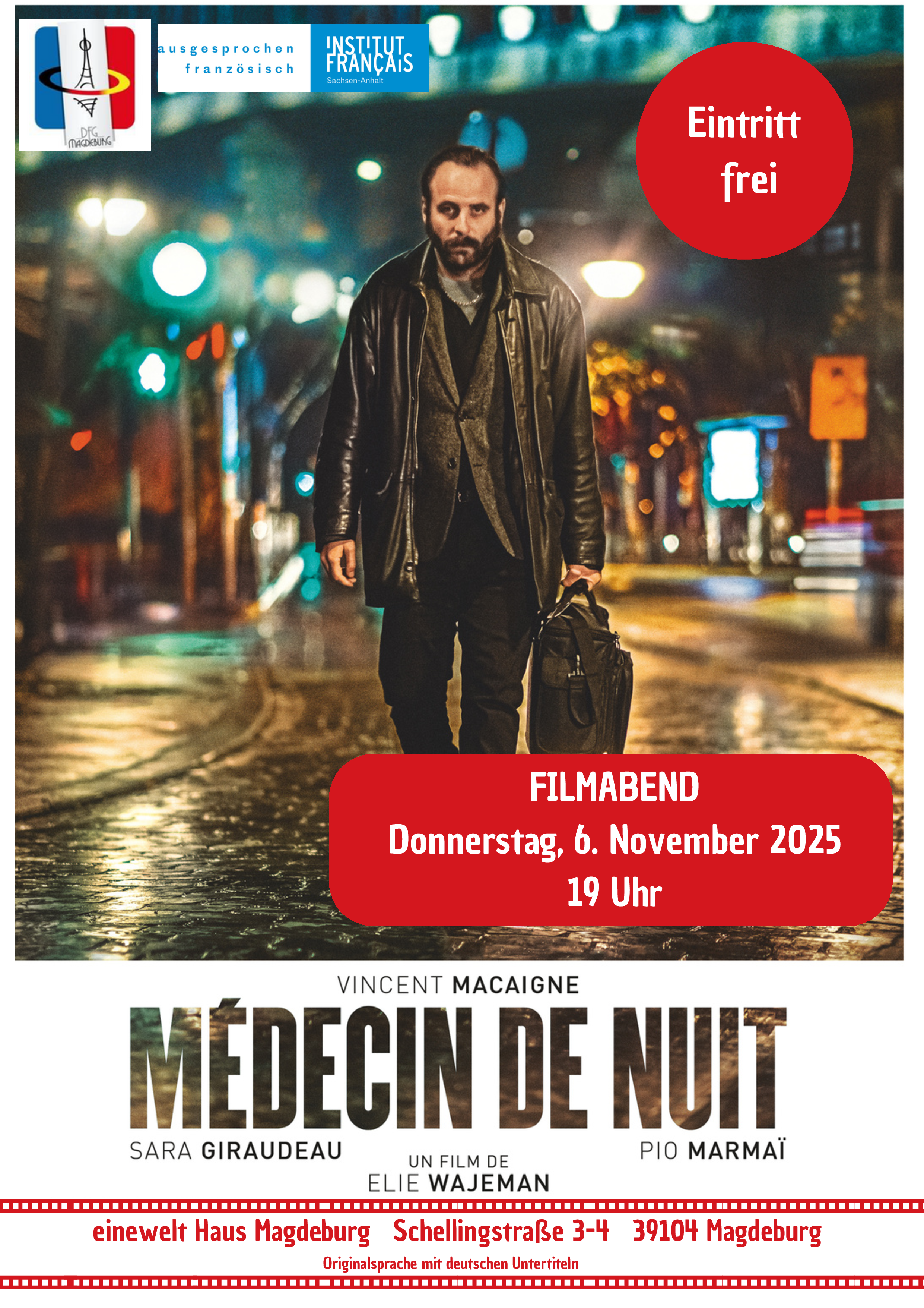 Die Deutsch-Französische Gesellschaft Magdeburg e. V. veranstaltet am 06.11.2025 im einewelt haus Magdeburg erstmals .in Kooperation mit dem Institut Français Sachsen-Anhalt einen öffentlichen französischen Filmabend.